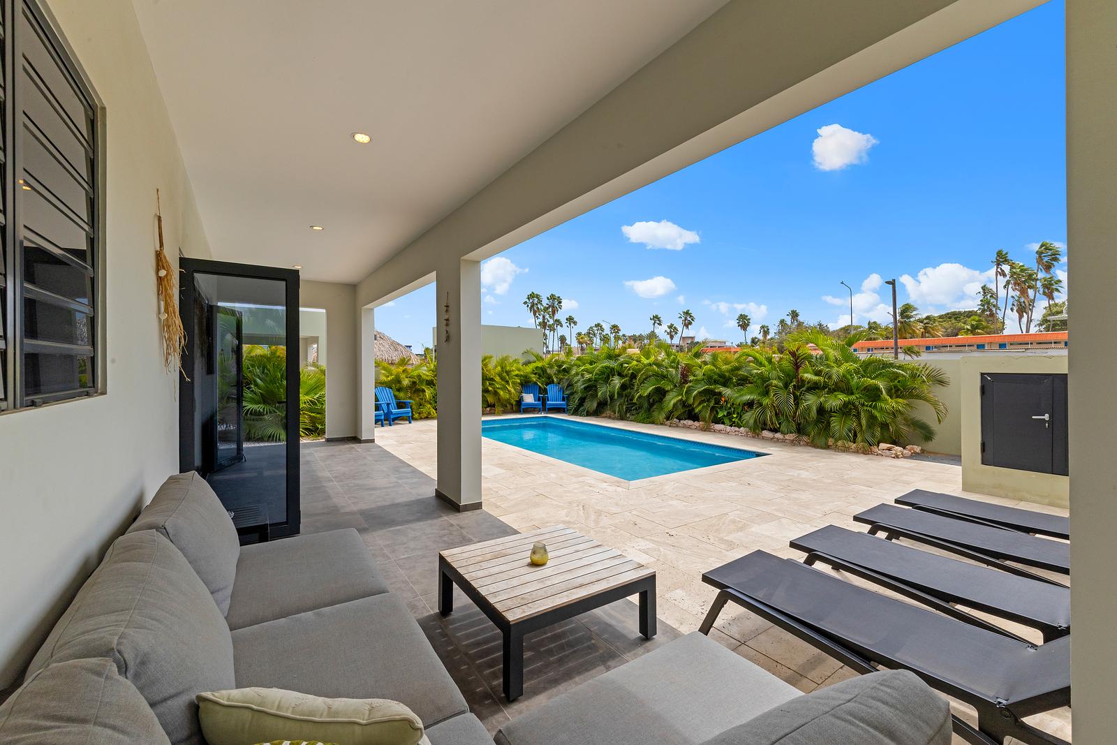 Just a 3-minute walk brings you to the lively Mambo Beach, with its restaurants, shops, nightlife, and beautiful beach. The combination of comfort, modern architecture, and tropical atmosphere ensures an unforgettable, carefree holiday.