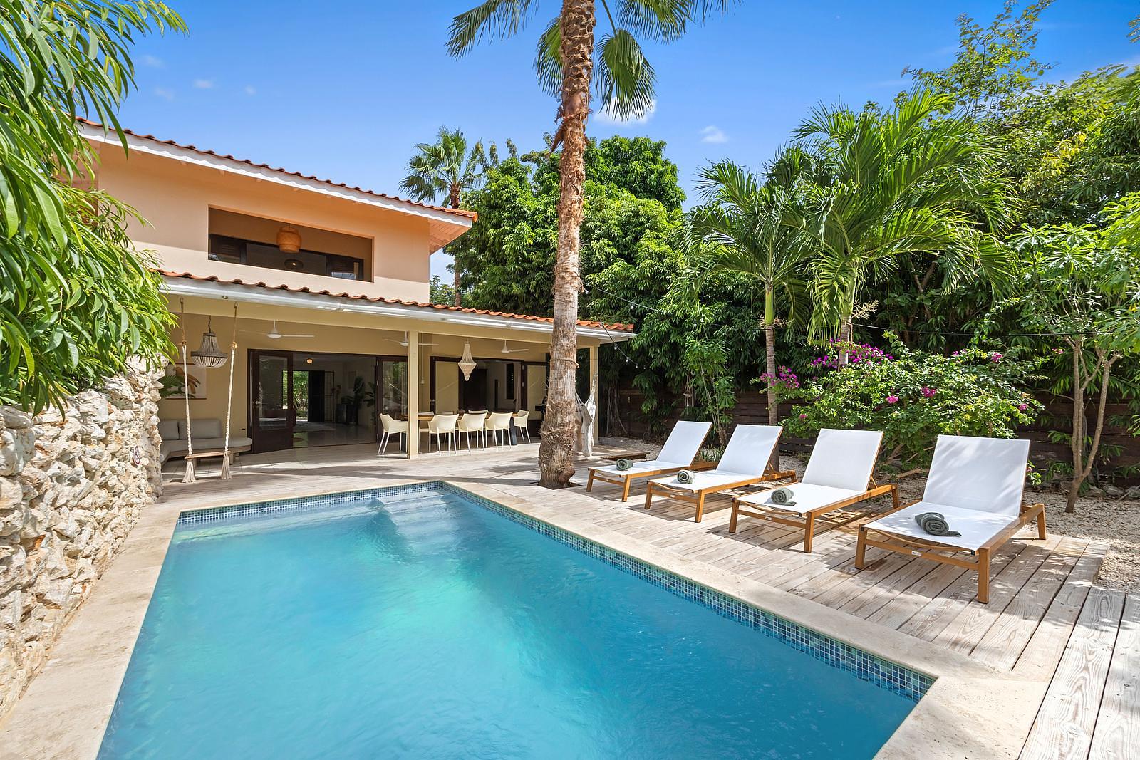 Ervaar ultieme rust en privacy in The Hidden Palm, een stijlvolle villa verscholen in een weelderige tropische tuin in Piscadera. Met een privézwembad, ruime terrassen en een volledig uitgeruste open keuken biedt deze villa het perfecte samenspel van comfort en luxe. De vier ruime slaapkamers, verspreid over twee verdiepingen, maken het ideaal voor gezinnen of vrienden.