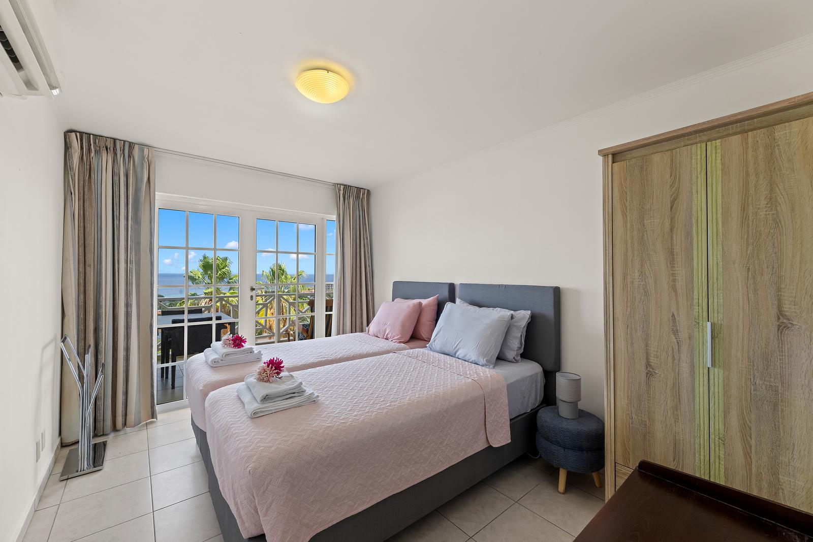 Het appartement beschikt over twee comfortabele slaapkamers en twee badkamers, waardoor het ideaal is voor een gezin, twee stellen of vrienden die samen reizen. Alle slaapkamers en woonkamer zijn voorzien van airconditioning, zodat je zelfs op de warmste dagen heerlijk koel kunt ontspannen.