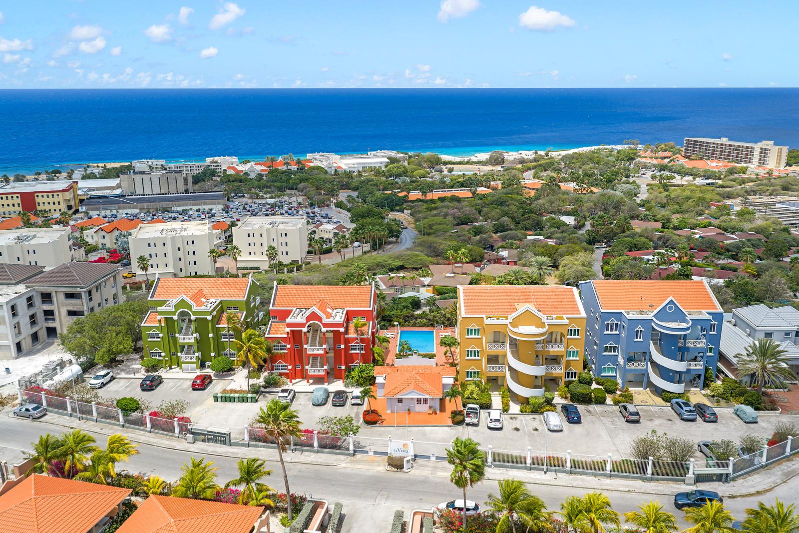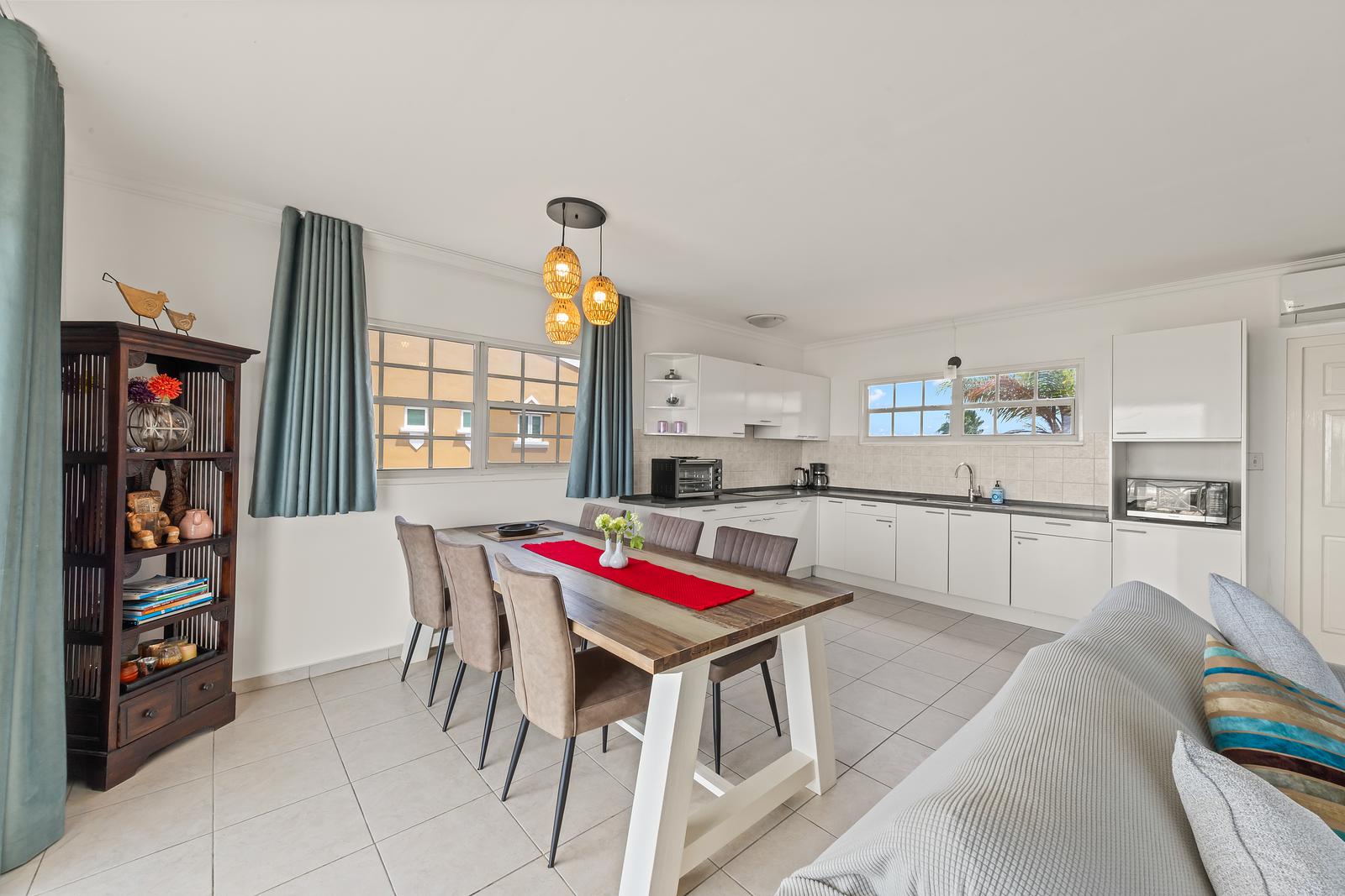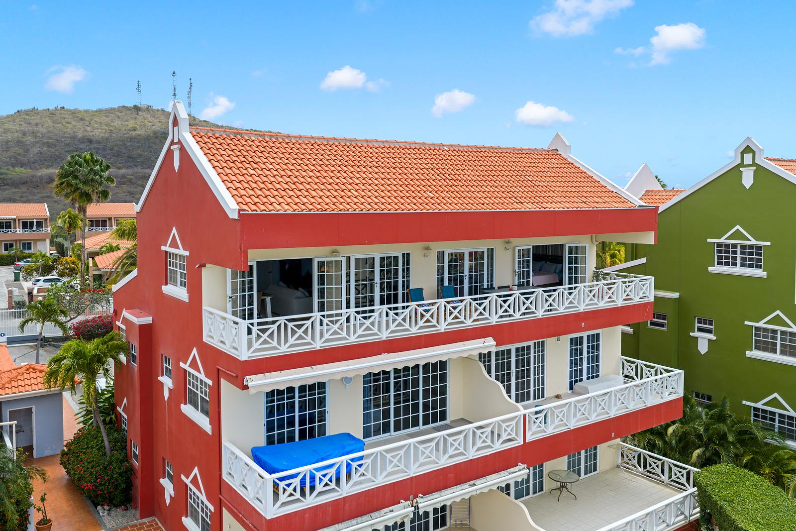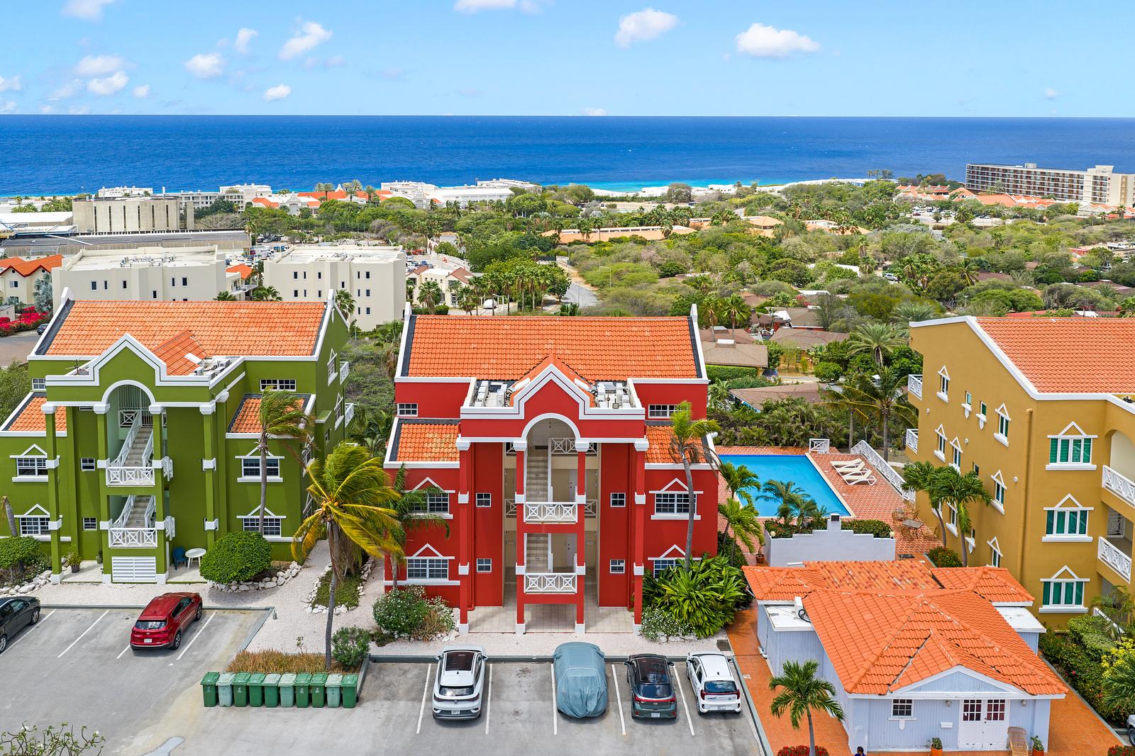 Het resort zelf is afgesloten en veilig, met voldoende parkeergelegenheid binnen het hek. Binnen enkele minuten rijd je naar het centrum van Willemstad, terwijl de mooiste stranden van het eiland ook binnen handbereik liggen.